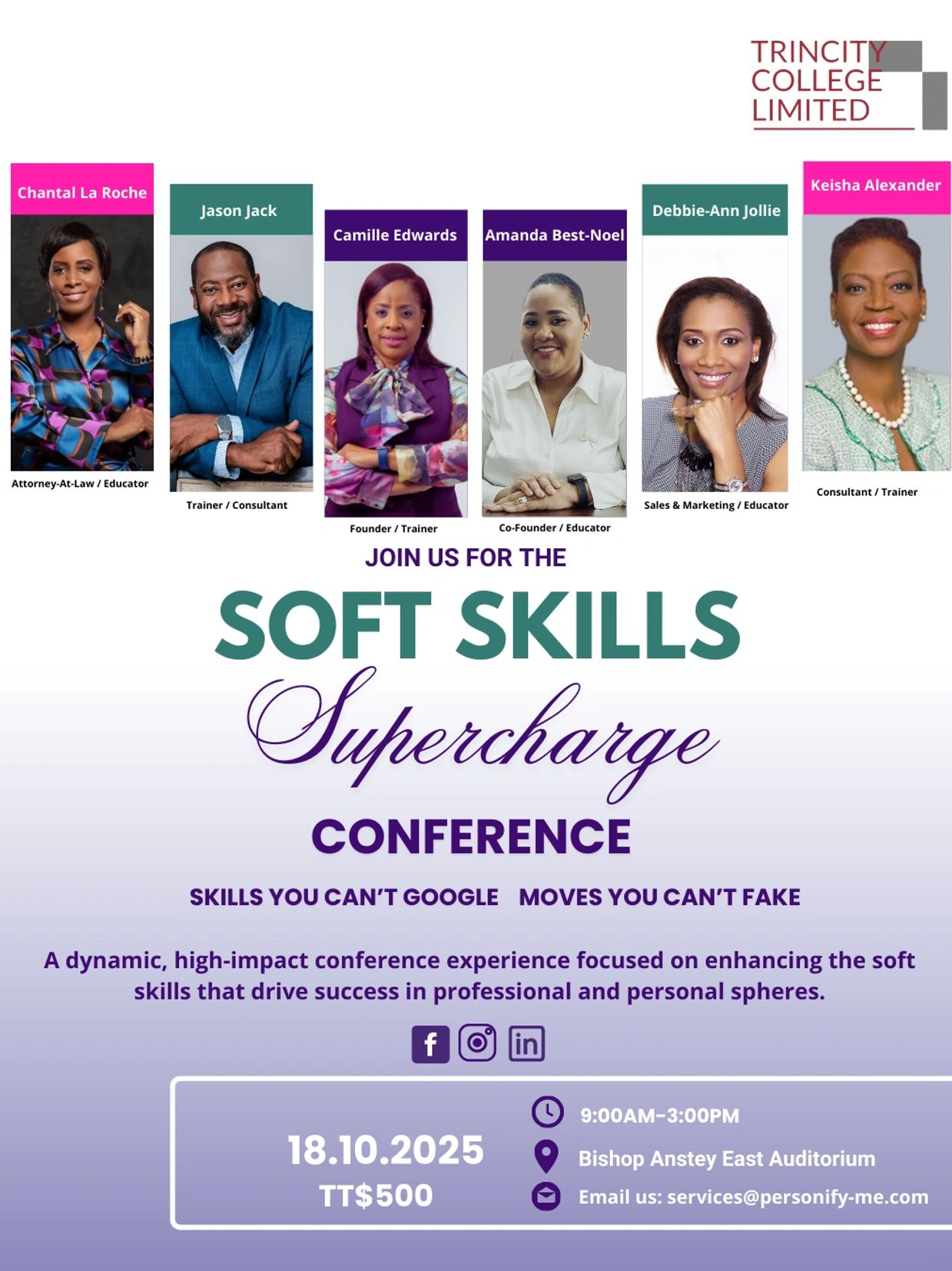 Join emerging leaders, entrepreneurs, students, and young professionals for a transformative one-day experience designed to sharpen the soft skills that matter most. From communication, time management, entrepreneurship, business etiquette, and personal branding, the Soft Skills Supercharge Conference will ignite the confidence and capabilities you need to lead, grow, and thrive.